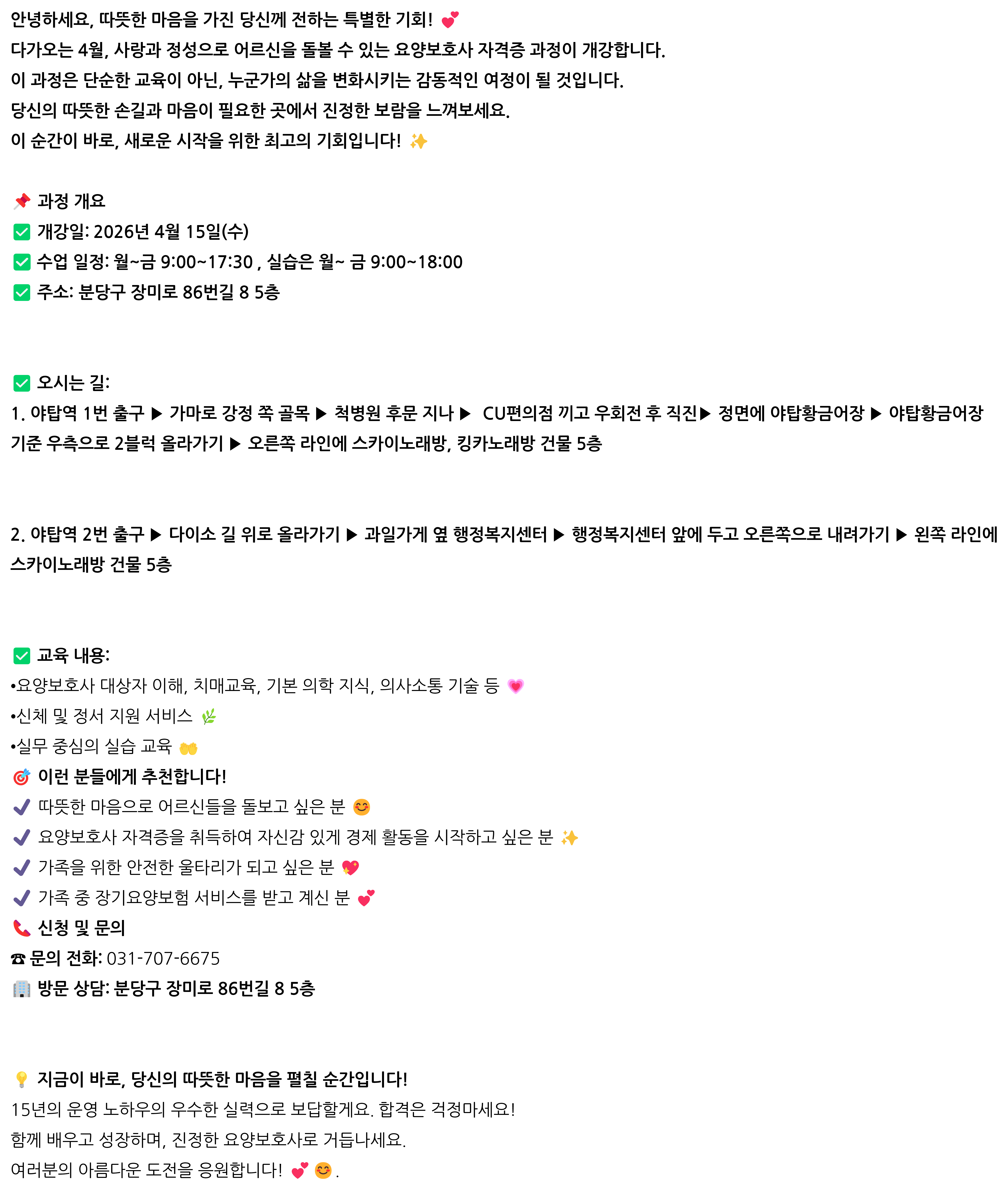 [2026년 4월 개강] 당신의 따뜻한 마음이 필요한 순간! 요양보호사 자격증 과정 모집 안내