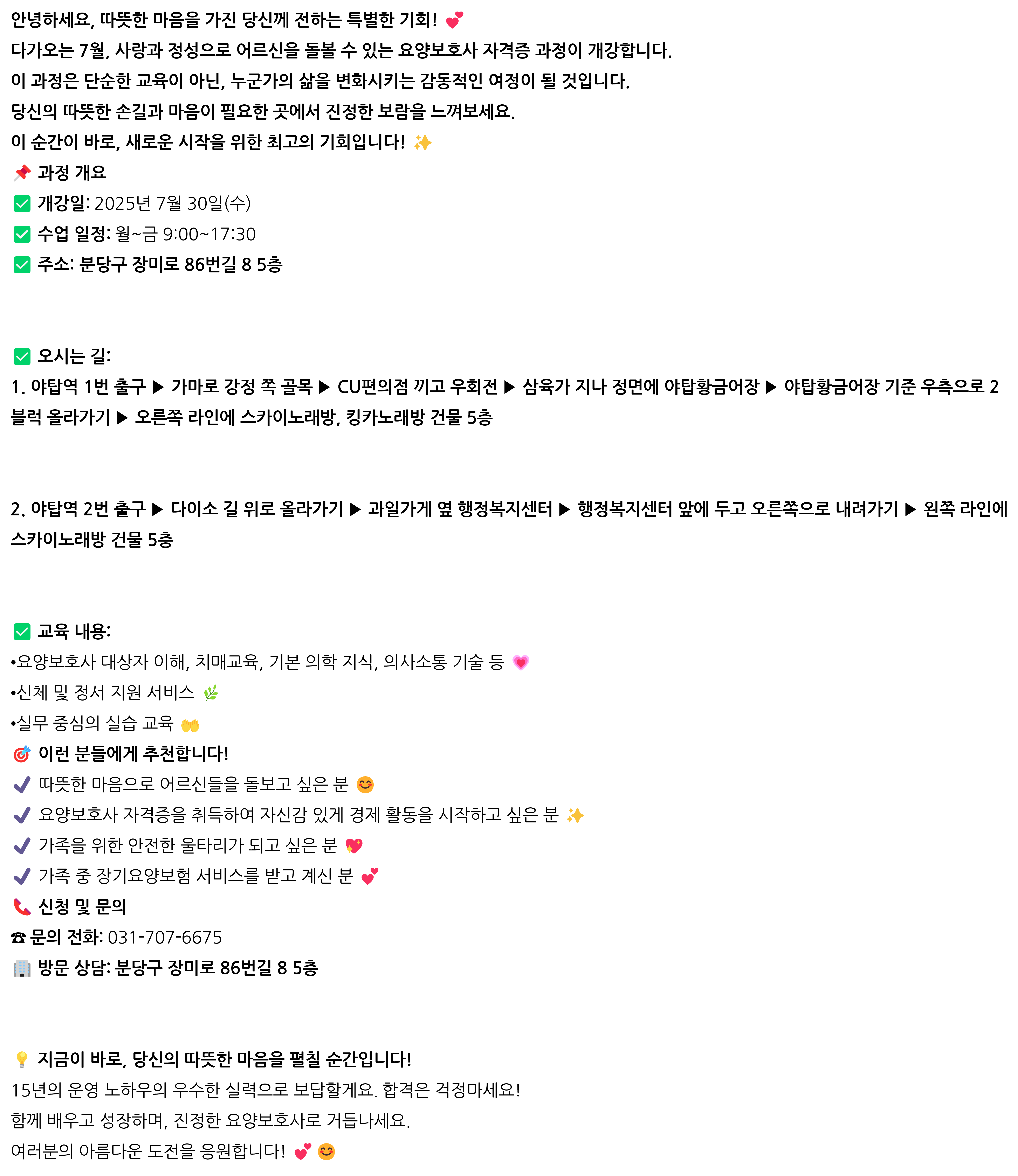 [2025년 7월 개강] 당신의 따뜻한 마음이 필요한 순간! 요양보호사 자격증 과정 모집 안내